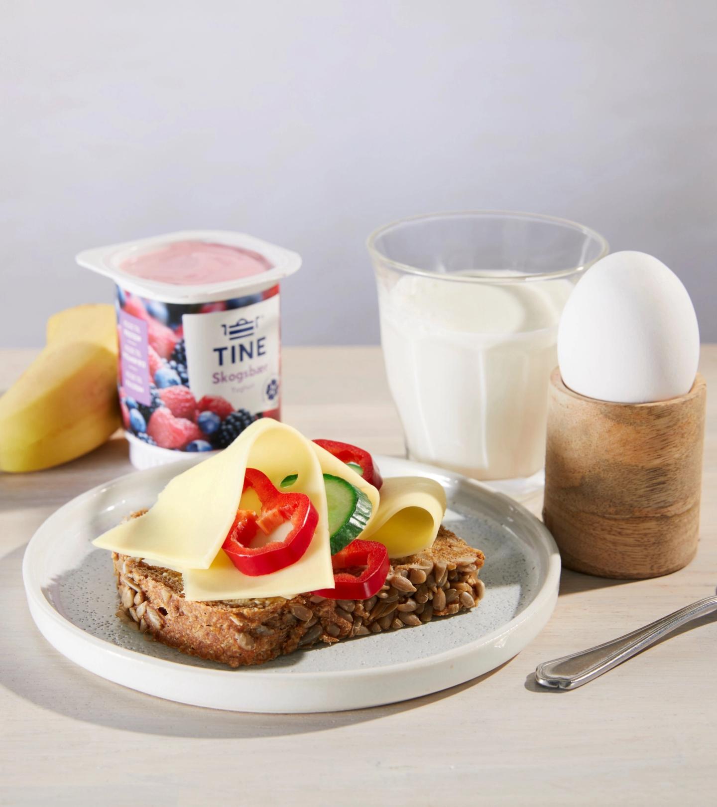 Dette tilsvarer energi- og proteinnivå fra et glass helmelk, et beger fruktyoghurt, en grov skive med smør og Norvegia, samt en halv banan og et kokt egg.
