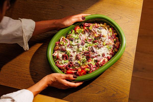 Kremet fetaost, deilige urter, olivenolje overalt, masse grønnsaker og nydelig kjøtt.
