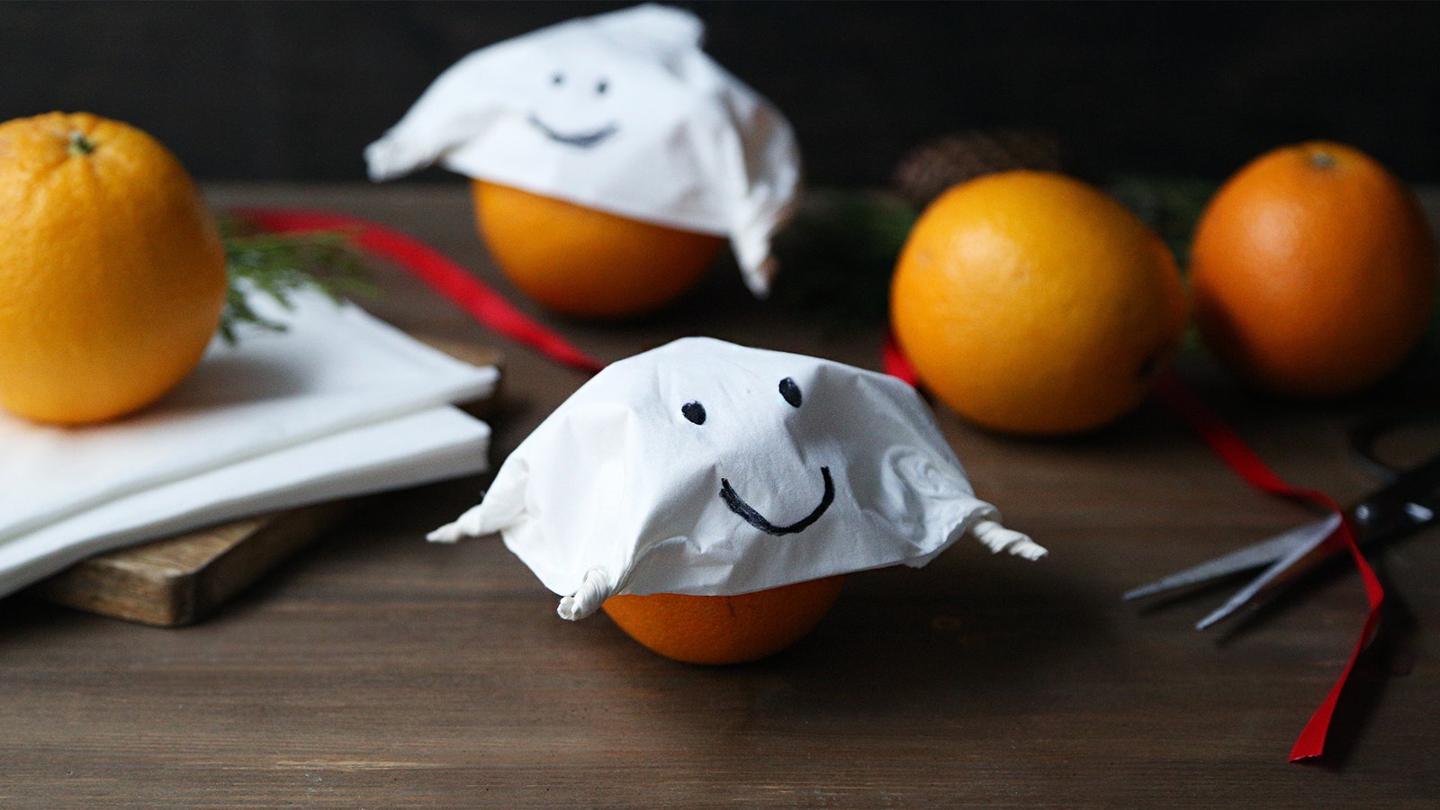 Appelsiner skjæres i tynne skiver og legges på et stekebrett kledd med bakepapir. Trykk forsiktig over appelsinskivene med tørkepapir for å få bort litt væske. Tørk i ovnen ved 100 °C, varmluft, i ca. 3 timer, eller til de er tørre. Snu skivene hver time. Lag hull, tre et bånd igjennom og heng dem i vinduet.