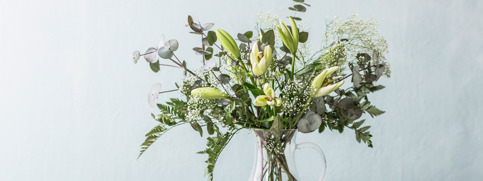 Lederløv, eucalyptus og brudeslør, 45cm, 9 stk, FreshFlowers