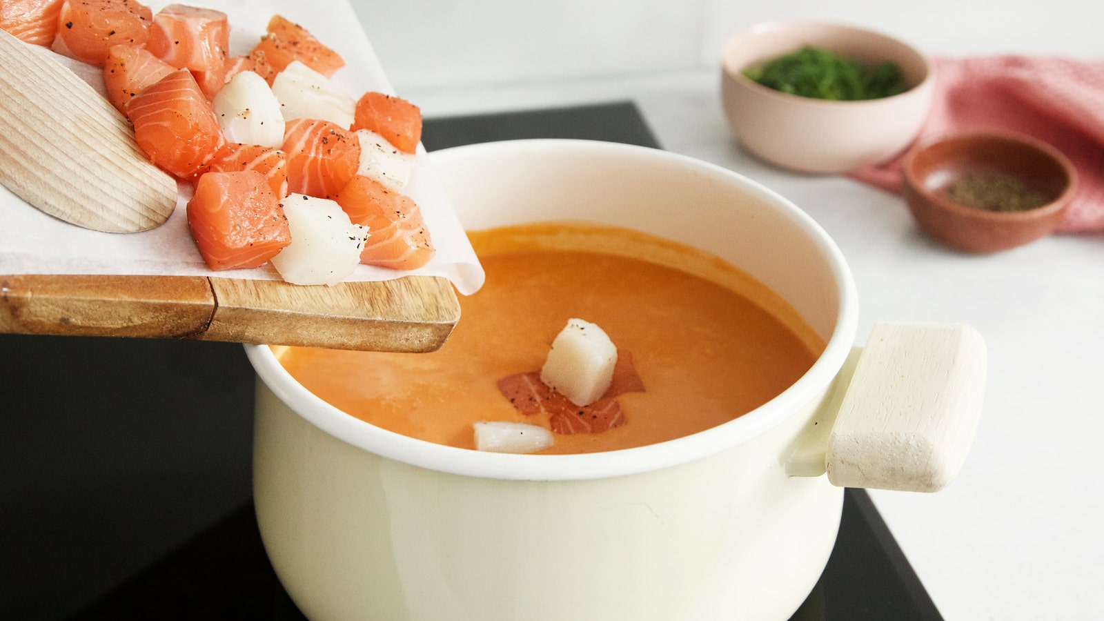 Det er superlett å forvandle en vanlig suppe til en fiskesuppe! Etter kun noen minutter blir fisken saftig og flakete. Ha gjerne i litt fløte eller crème fraiche i suppen for å gjøre den ekstra kremete og god!