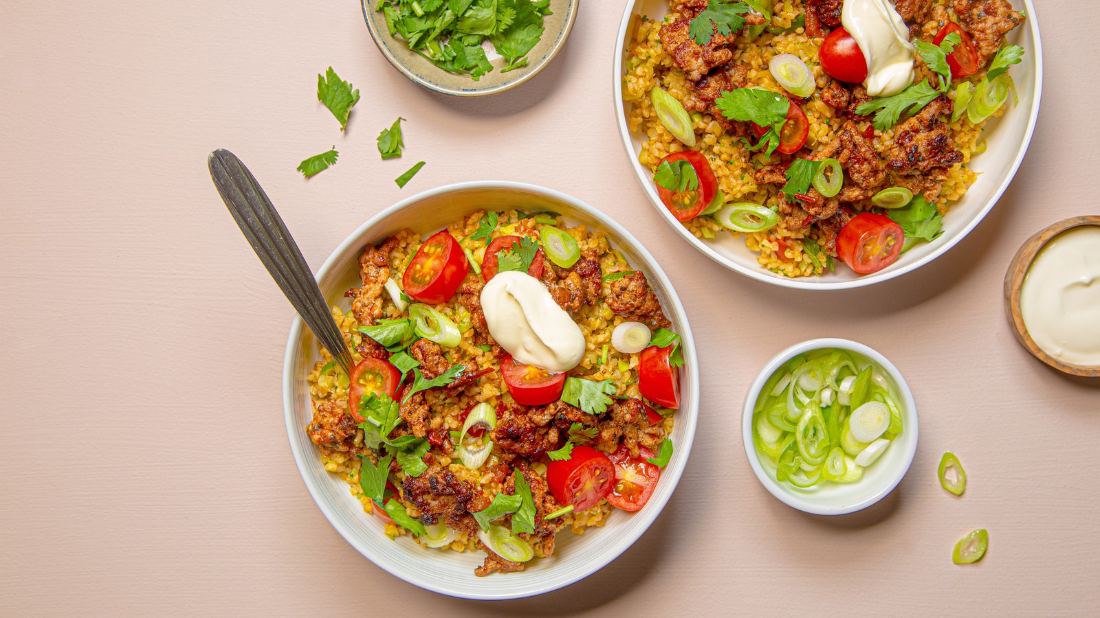 Bulgur i kombinasjon med salsa, grønnsaker og lammekjøttdeig gir en sunn rett med mye smak som er enkel og skikkelig fresh! I denne middagen sparer du tid ved å bruke brokkoliris og ferdig tomatsalsa!