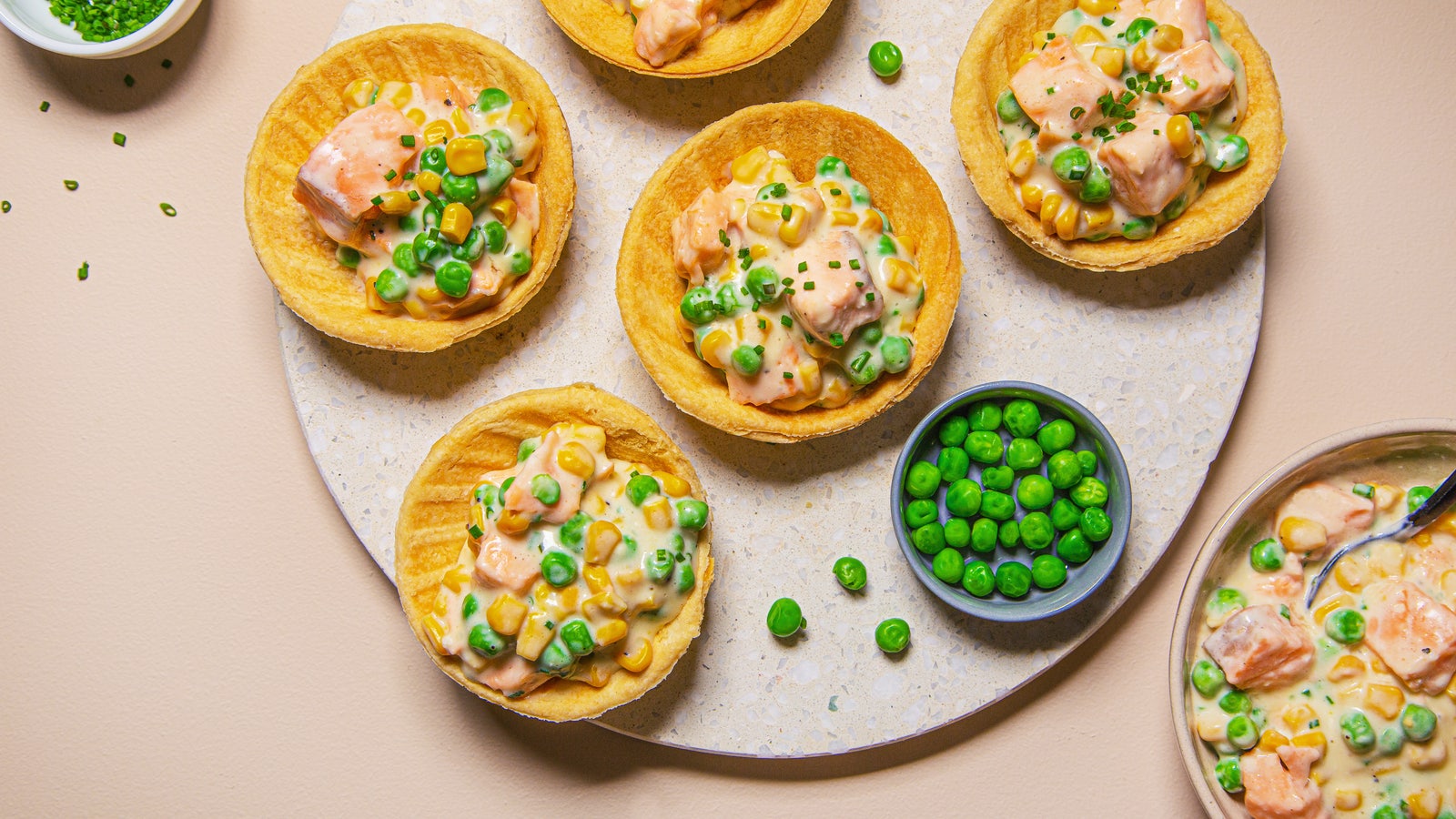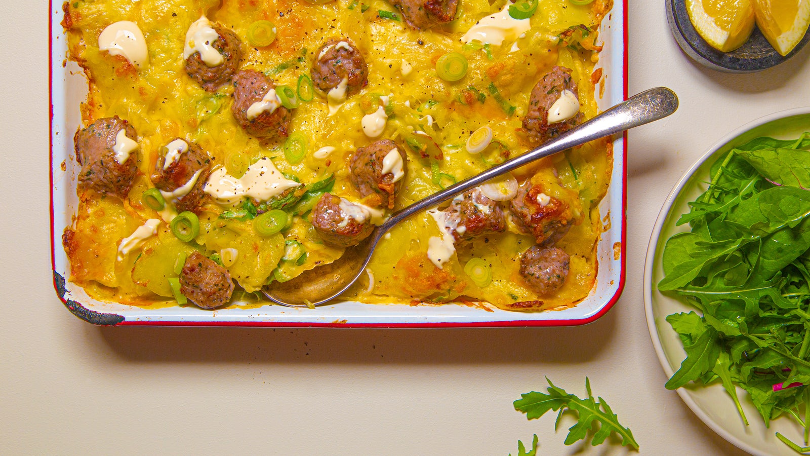 Fiskekaker er en ingrediens som sparer deg for masse tid. I denne oppskriften setter du dem inn i ovnen når du skrur den på – fiskekakene trenger nemlig kun å gjennomvarmes, og du slipper å vente på at ovnen skal varme seg helt opp.