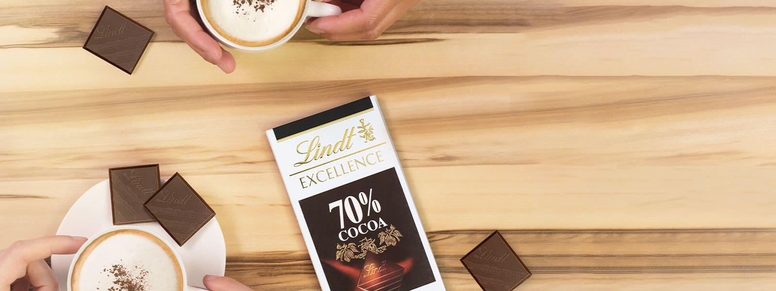 Mørk sjokolade er en perfekt godbit til morgen- eller ettermiddagskaffen. EXCELLENCE sjokoladene passer ekstra bra til både te og kaffe.