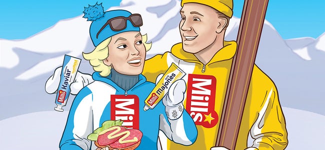 Ingen ting er verre enn å legge ut på skitur med feil smøring på skiene og det samme gjelder feil smøring på skiva. Eggene blir bedre med en god stripe Mills kaviar og salamien smaker best med en stripe Mills Majones. Den riktige smøringen løfter både brødmåltidet og turmaten, så huske å velge riktig smøring i vinter.. Også på skiva.