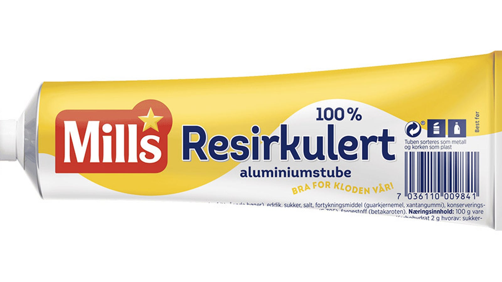 Alle Mills-tuber lages nå av 100 prosent resirkulert aluminium. Det betyr redusert klimaavtrykk for alle de 21 millioner Mills-tubene som selges hvert år!