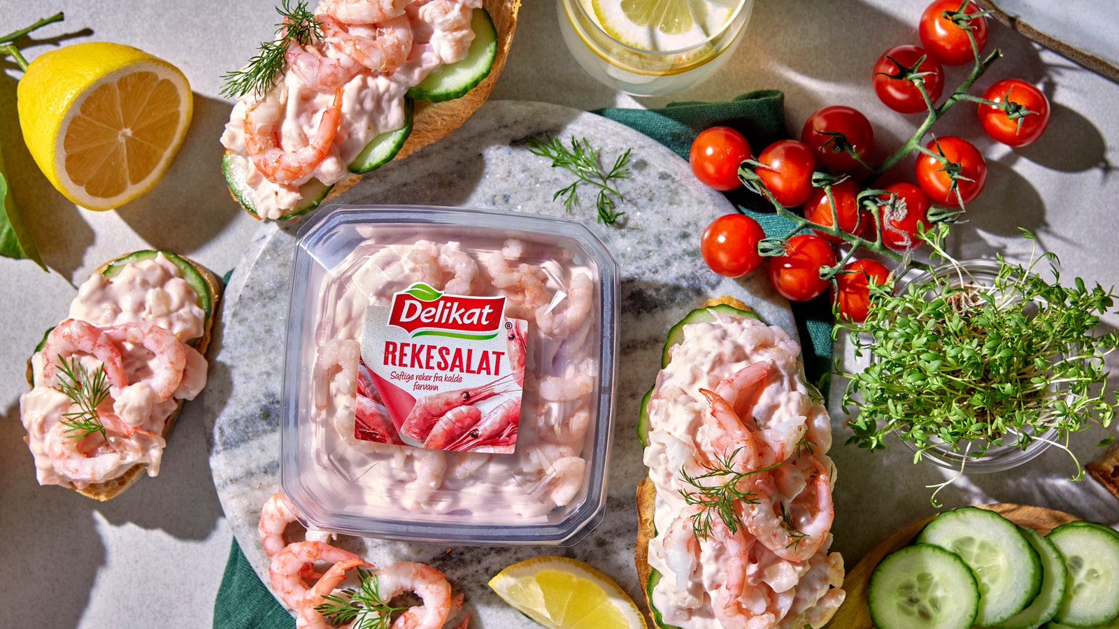 Delikat salater lages med saftige reker fra kalde farvann. Ikke bare smaker det godt, det er også bra for hjertet å bytte ut kjøttpålegg med fisk eller sjømat 🐟