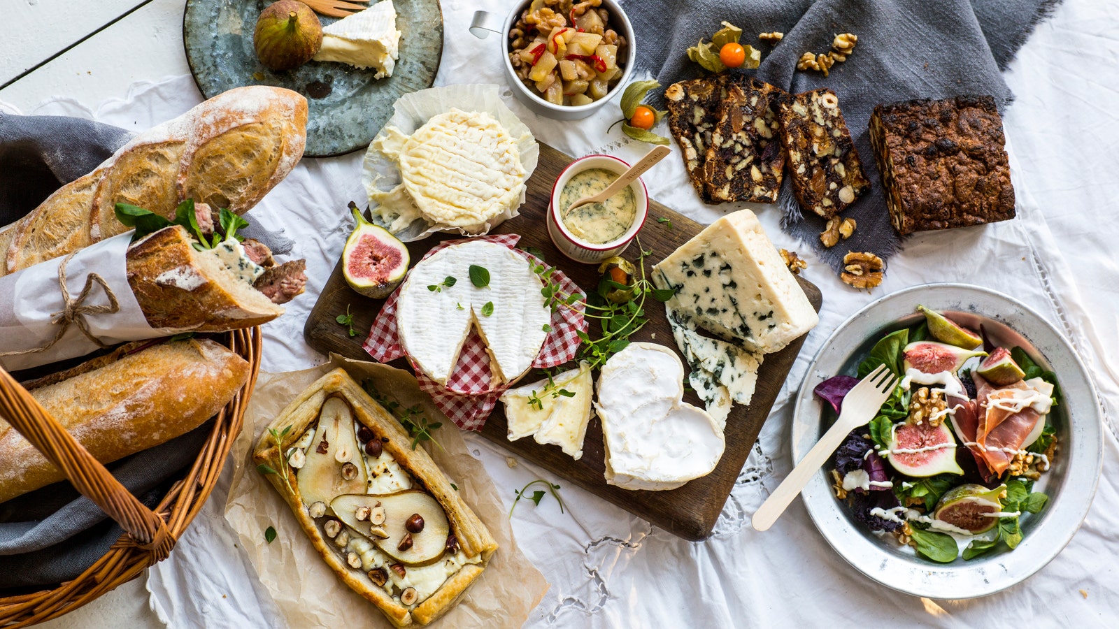 Vi bør ha noe under osten også, og det finnes et svært godt utvalg av kjeks. Det kan være vanskelig å velge, men ta med en sprø, en søt og en salt, så har du til de fleste. Hvis man trenger noe mer mettende er også baguetter og nøtte- og fruktbrød nydelig til.