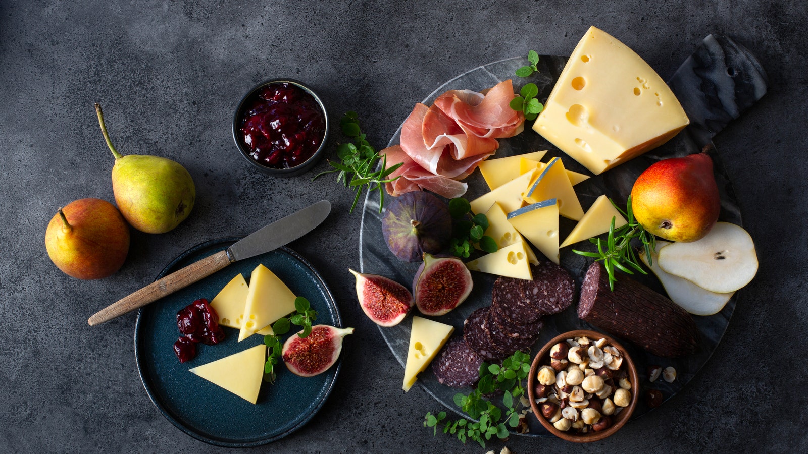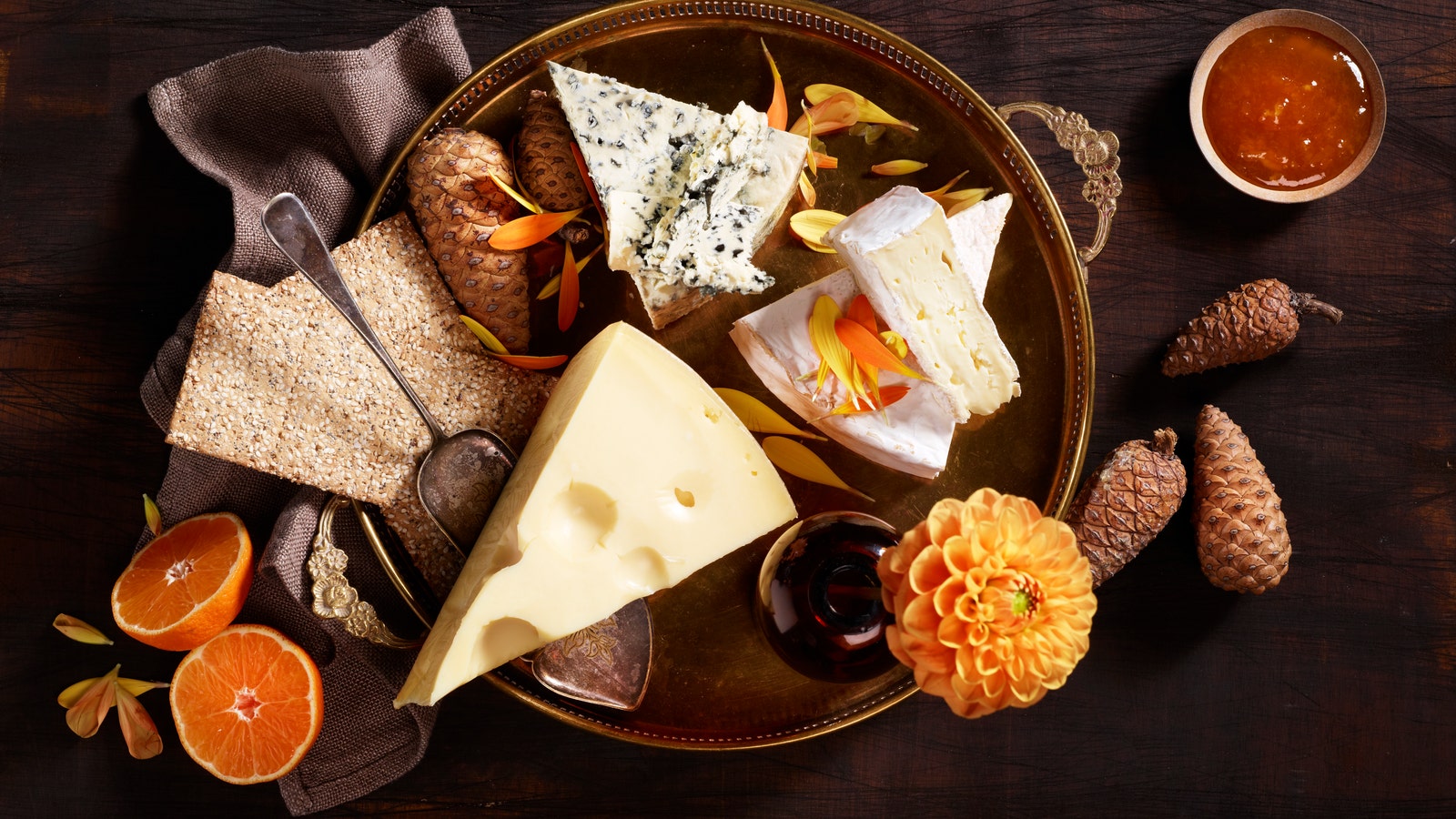 På et større ostefat bør man minst ha en ost fra hver av de fire store ostefamiliene: Hvitmugg, blåmugg, kittmodnet og fastost, og gjerne en spennende ost i tillegg, som f.eks. chevre.