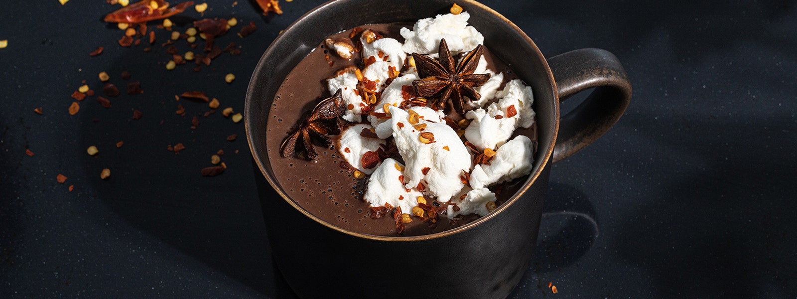 En krydret kakao med en smak av chili! Med melk og fløte, sjokolade og kakaopulver, får du en dyp sjokoladesmak som rører hjerterota. Smak deg frem og gjør den akkurat like søt som du selv ønsker, legg til krydder og topp med pisket krem eller marshmallows. Se oppskrift her
