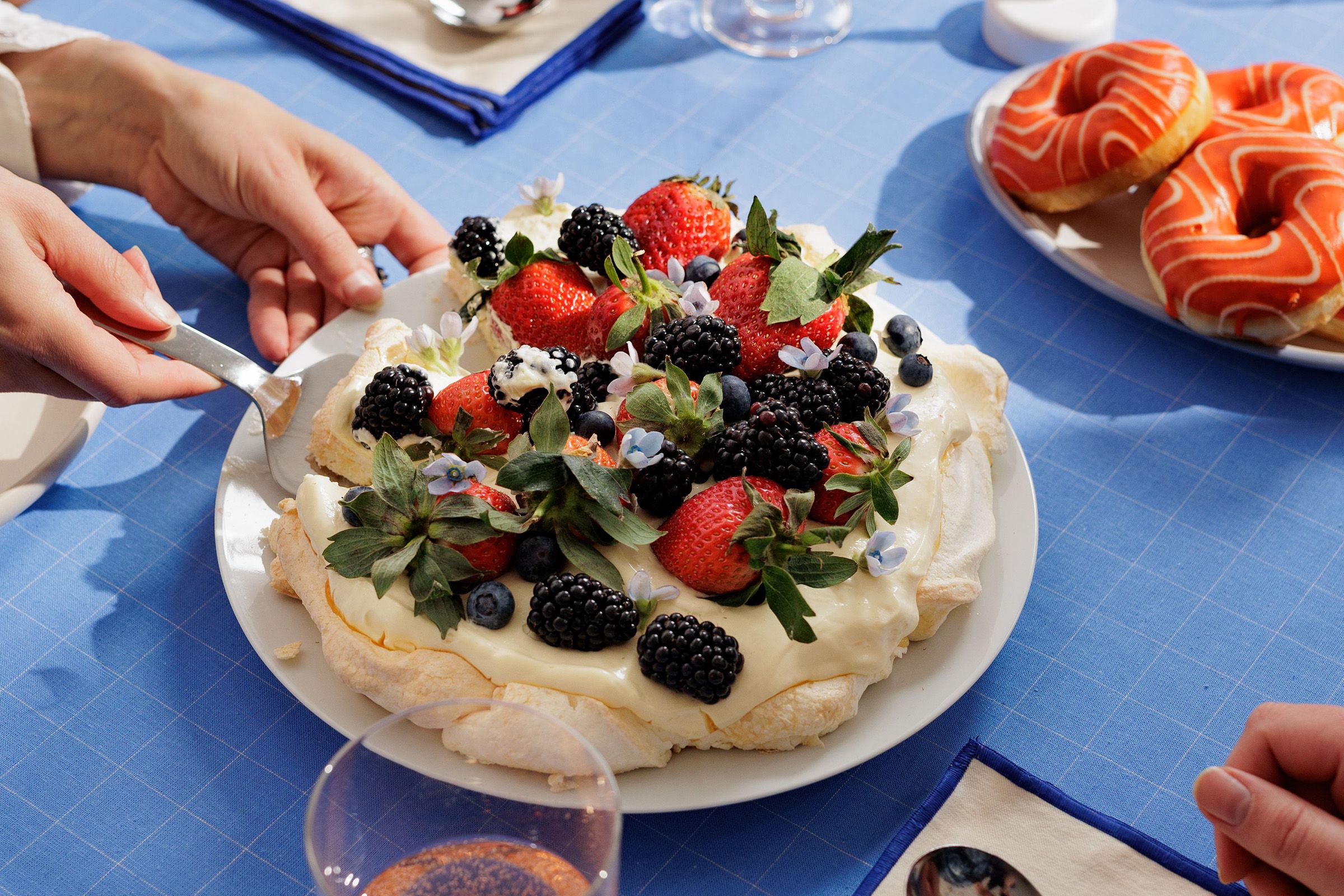 Pavlova er den mest populære 17. mai-kaken. Heldigvis er den enkel å tilberede, og har en bunn som kan lages mange dager i forveien. Det eneste du trenger å gjøre på selve dagen da, er å legge vaniljekrem på marengsbunnen og toppe med syrlige bær. Dander gjerne med bjørnebær, blåbær, delte jordbær, bringebær og rips for å gi den litt ekstra smak.